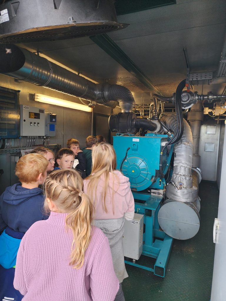 Die Schülerinnen und Schüler nahmen dabei die Biogasanlage ganz genau unter die Lupe und lernten, wie aus den verschiedenen Rohstoffen Strom erzeugt werden kann. Marc Kruse erklärte den Kindern die Abläufe vom Einfüllen der Rohstoffe, die in Biogas umgewandelt werden, bis zum Antrieb des Motors und des Generators, der schlussendlich Strom produziert.