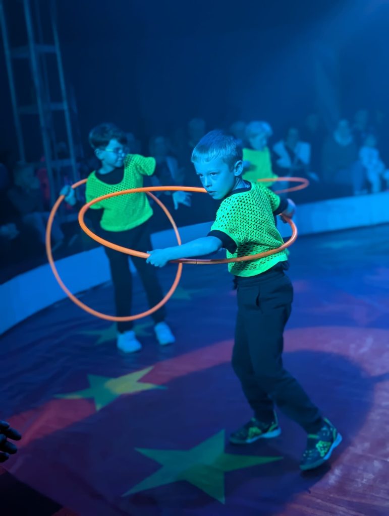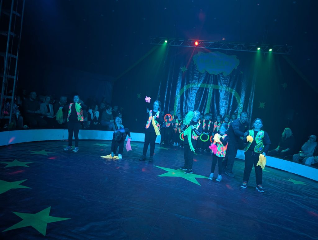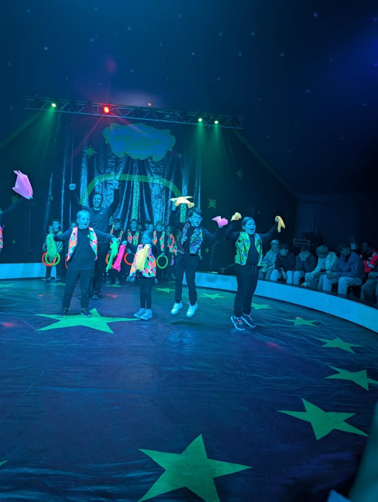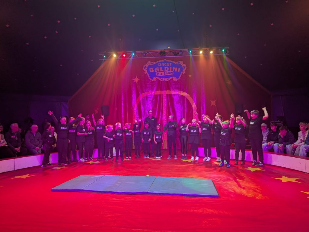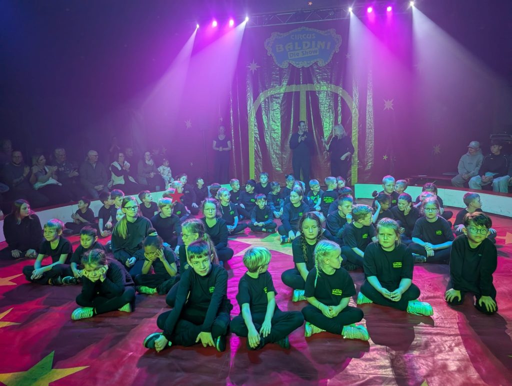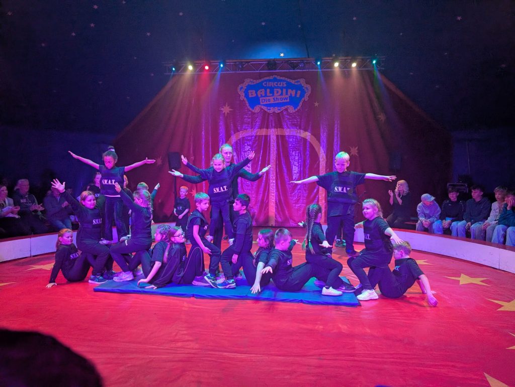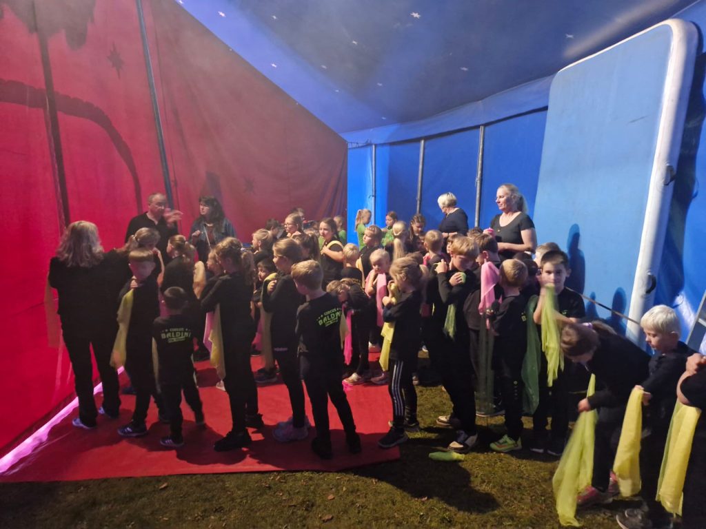Eine Woche lang hatten die Schülerinnen und Schüler der Grundschule Kampe fleißig trainiert, Künststücke eingeübt, Choreographien einstudiert und mit viel Freude wirklich alles gegeben. Am letzten Schultag vor den Herbstferien war es dann endlich soweit und es hieß: Manege frei für den Kamper Kinderzirkus! Die Aufregung hinter dem Vorhang war groß. In der Manege begeisterten die Kinder das Publikum mit ihrem tollen Programm und zeigten ihr Können beim Balancieren, bei Akrobatik, Seiltanz, Kunststücken am Trapez und einer Clownsshow. Am Ende gab es für alle einen tosenden Applaus vom begeisterten Publikum.
