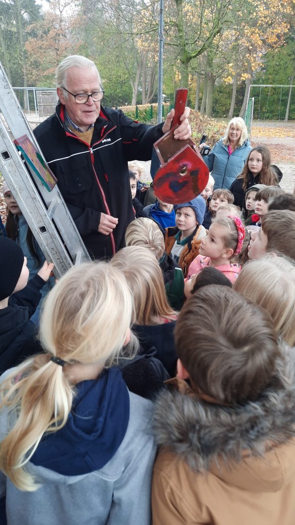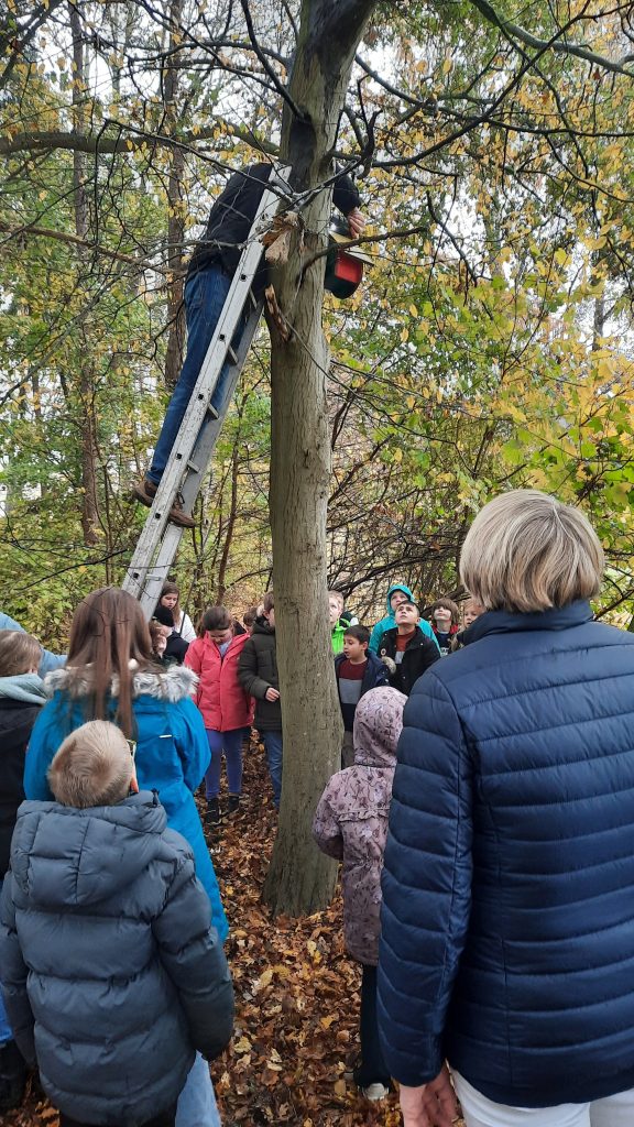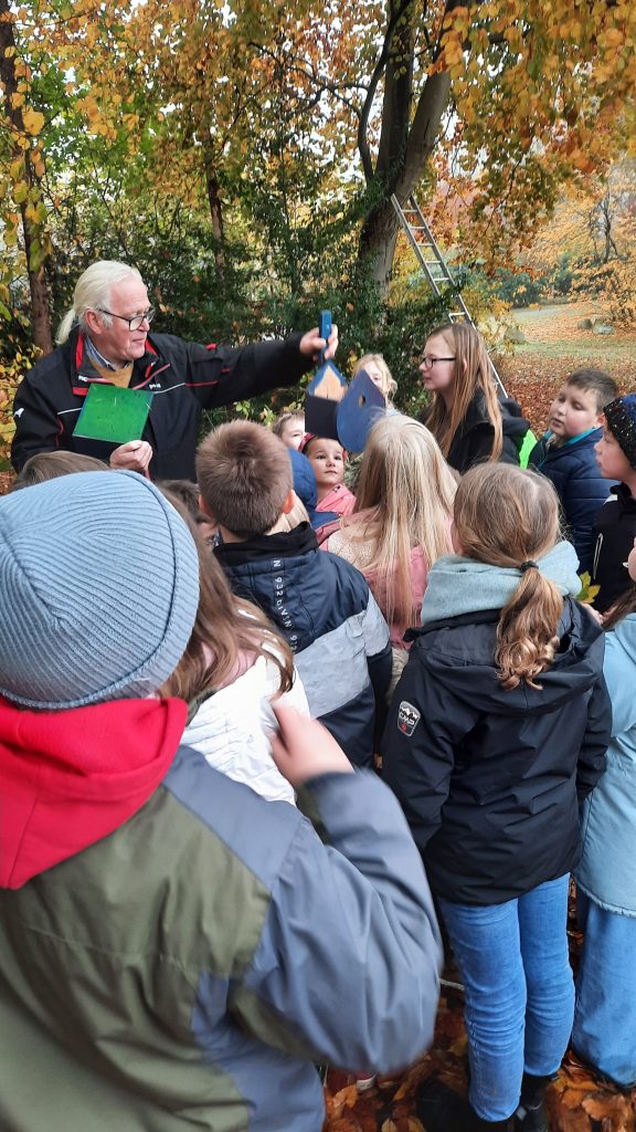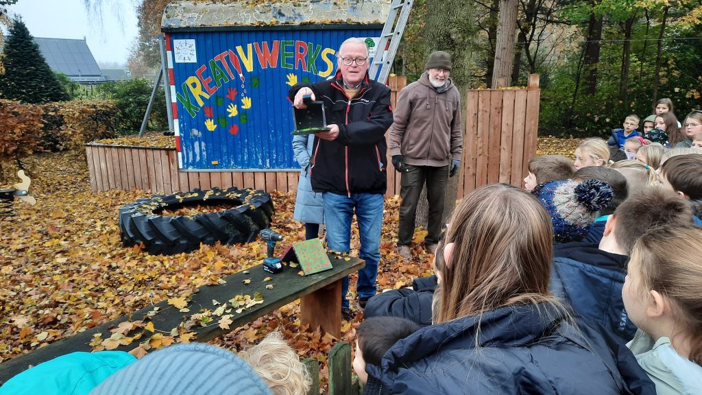 Im vergangenen Jahr hatten die Kinder der Klassen 1 bis 4 jede Menge Kreativität gezeigt: Sie bemalten Nistkästen, die anschließend auf dem Schulhof und im Dorf aufgehängt wurden, um heimischen Vögeln ein zu Hause zu bieten. Nun war es endlich soweit – Josef Themann und Mathias Uchtmann besuchten die Schule, um gemeinsam mit den Schülerinnen und Schülern nachzusehen, welche Nistkästen bewohnt waren.