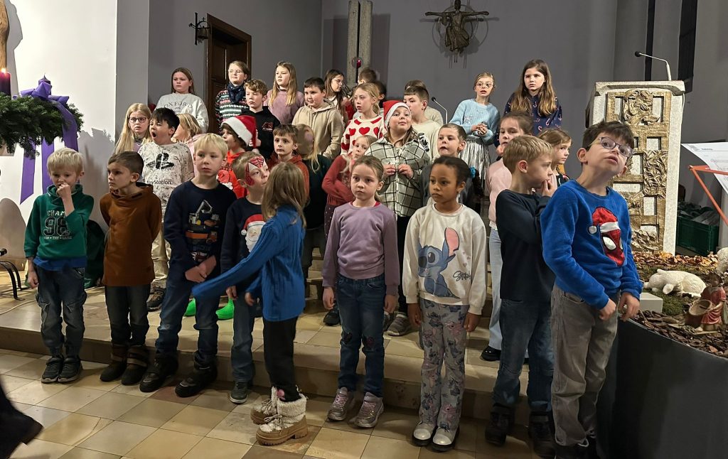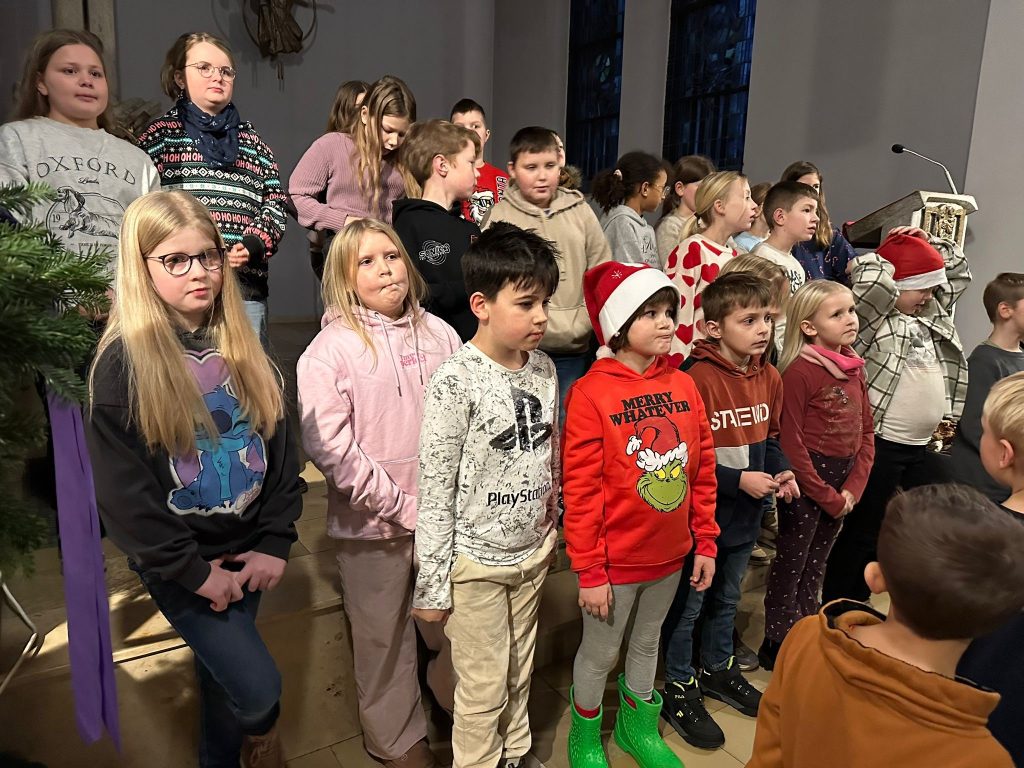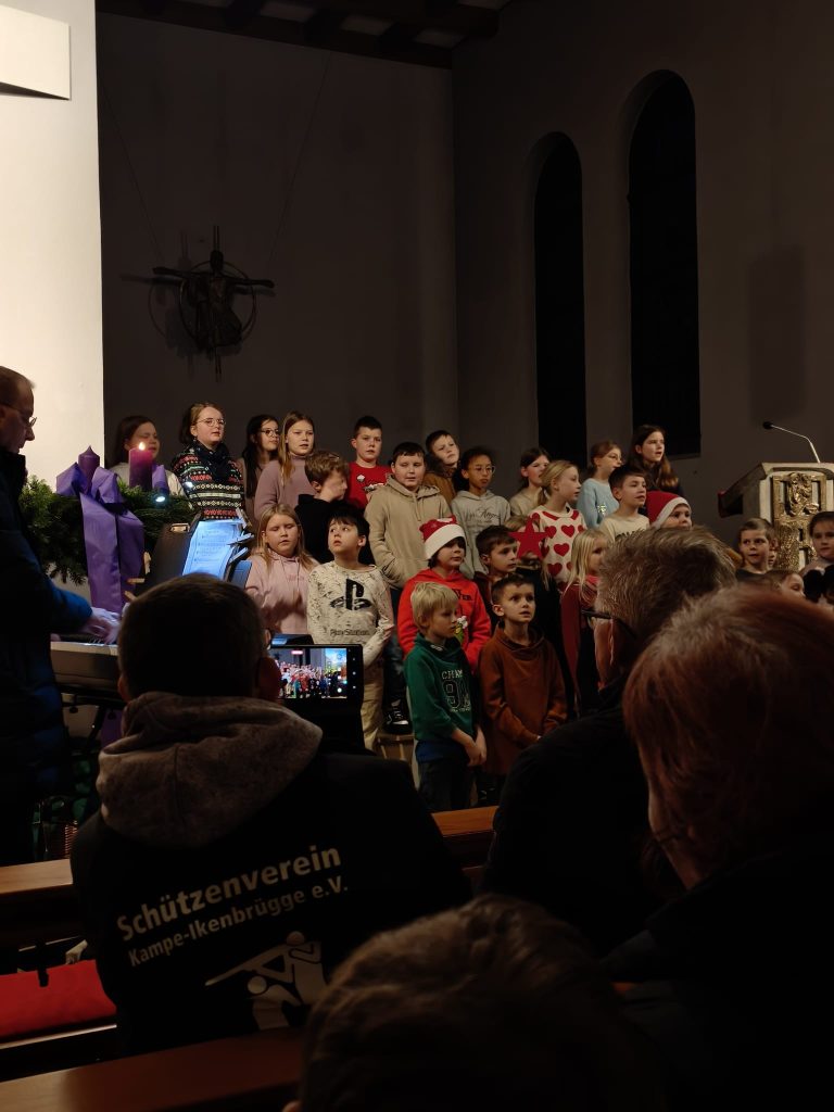 In der Kirche begrüßte Frau Kreye herzlich alle Zuhörerinnen und Zuhörer und las weihnachtliche Geschichten vor, die Groß und Klein auf die Adventszeit einstimmten. Im Anschluss daran präsentierten die Kinder der Grundschule Kampe unter der Leitung von Herrn Kollenbach ein kleines musikalisches Programm. Mit ihren Weihnachtsliedern sorgten sie für leuchtende Augen und viel Applaus.