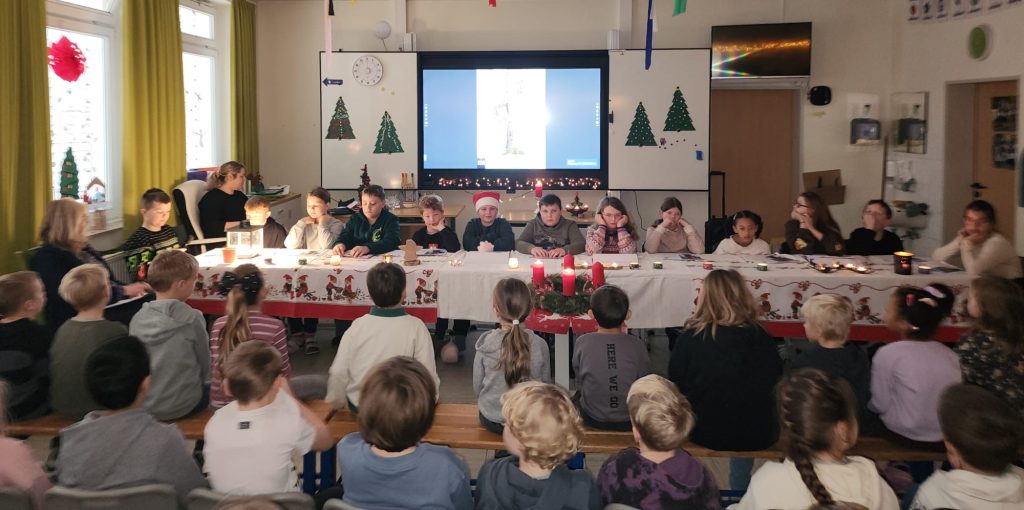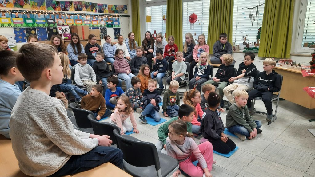 Auf dem Programm standen unter anderem Mama Muh, eine spannende Geschichte von Frau Kreye, in der die mutigen Kinder der 4. Klasse Räubern das Handwerk legen, sowie Das Weihnachtsdings und Lauras Stern. Mit viel Engagement, Freude und einer großen Portion Lampenfieber brachten die Kinder ihre Geschichten zum Klingen.