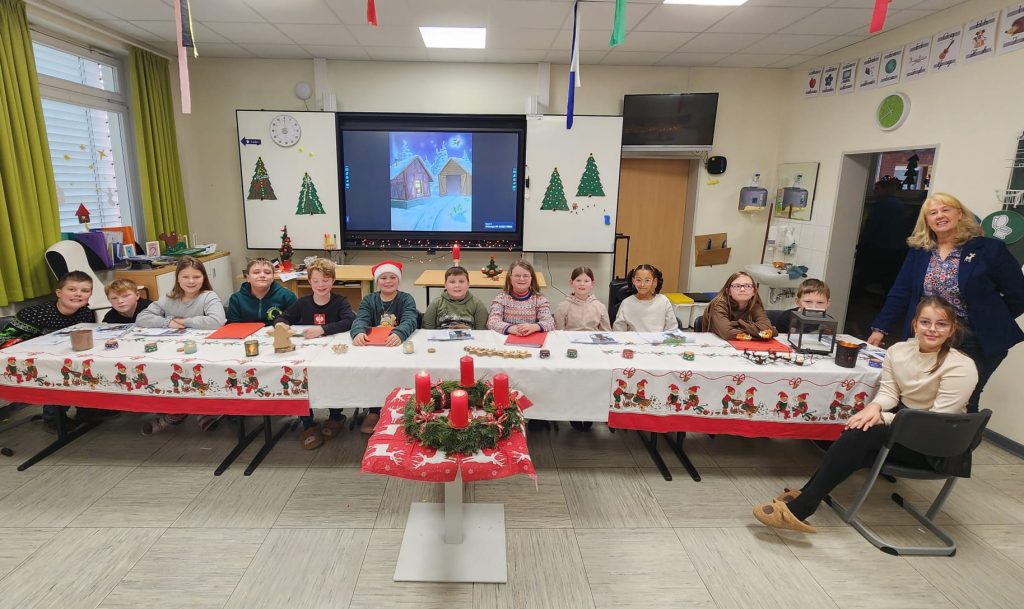 In der vergangenen Woche verwandelte sich das festlich geschmückte Klassenzimmer der Klasse 4 in einen gemütlichen Vorleseraum. Vier Tage lang luden die Schülerinnen und Schüler zu einem besonderen Lesemarathon ein: Für alle interessierten Zuhörerinnen und Zuhörer wurden weihnachtliche und spannende Geschichten vorgelesen, die die Kinder vorher intensiv mit Frau Kreye geübt hatten.