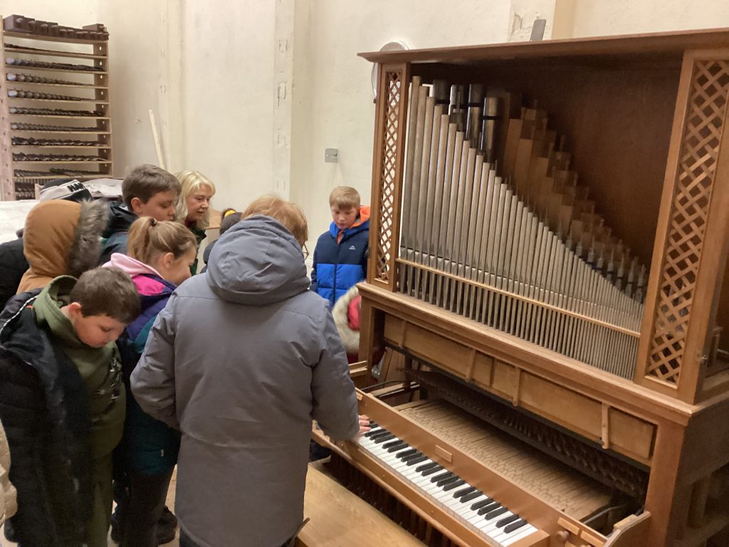 Natürlich durfte auch das praktische Ausprobieren nicht fehlen: Jedes Kind hatte die Gelegenheit, selbst auf einer Orgel zu spielen. Das war für alle eine beeindruckende Erfahrung!